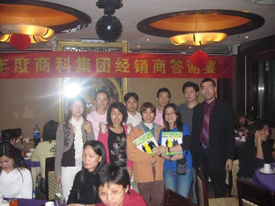 2006年1月17日,商科集團廣州分公司與100多位經銷商濟濟一堂,舉行了經銷商答謝宴,感謝過去一年各位經銷商對商科集團的支持,當晚還頒發了“年度個人貢獻獎”,“年度公司貢獻獎”,“年度優秀代理商獎”,獎品和獎金豐厚,氣氛熱烈,讓我們一起看看當晚的盛況。