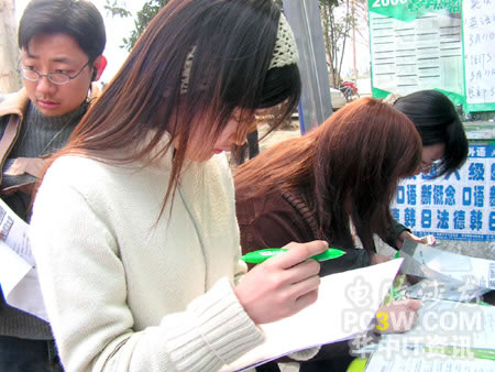 這位MM看起來有點眼熟。仔細想想,原來是上次MAYA形象代言人選拔賽決賽選手,武漢大學的羅瀟哦。她也被路邊的產品演示吸引過來,并填寫了問卷調查。