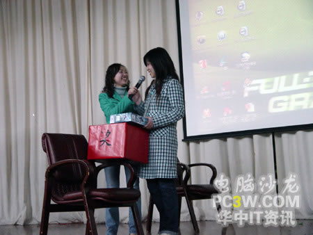 接下來,商科集團武漢天行電腦市場部涂嵐女士抽出了今天晚上活動的二等獎,臺電MP3。