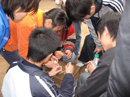 全體隊員進行第一項“人椅游戲