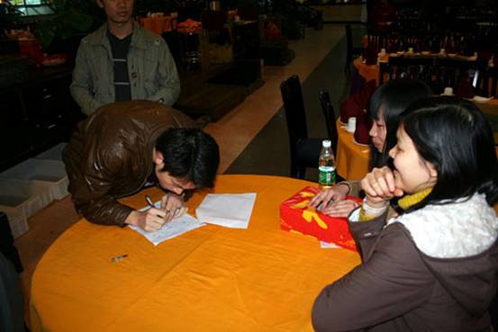 下午4時(shí)整,全體與會(huì)人員懷著興奮的心情,準(zhǔn)時(shí)來到位于廣州市區(qū)大嘴漁港飯店的禮堂大會(huì)場(chǎng)。在進(jìn)入會(huì)場(chǎng)之后,工作人員為大家準(zhǔn)備好了抽簽箱。每人都能抽取一個(gè)編號(hào),根據(jù)這個(gè)編號(hào)大家就能參加商科傳統(tǒng)的抽獎(jiǎng)活動(dòng)了。