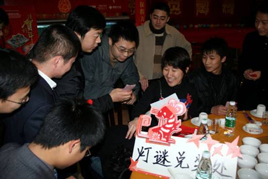 先到場(chǎng)的工作人員早已經(jīng)為大家準(zhǔn)備好了燈謎競(jìng)猜活動(dòng)。在晚會(huì)開始之前,先到的同事和領(lǐng)導(dǎo)們興致勃勃的加入燈謎活動(dòng)之中。