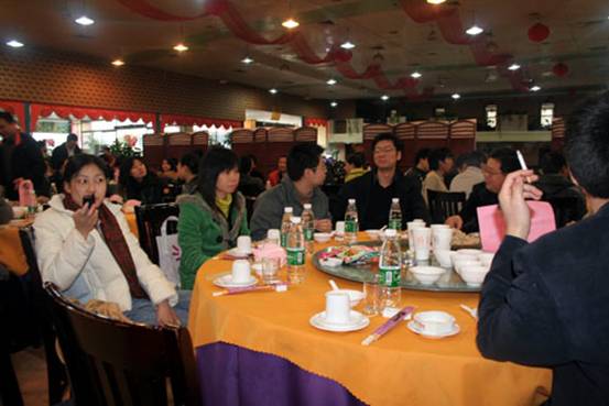 在晚會(huì)開始之前,先到的同事們興高采烈的在一起交流,分享著過去一年的喜悅與快樂。經(jīng)過了一年辛勤、緊張的工作,終于可以放松一下了。