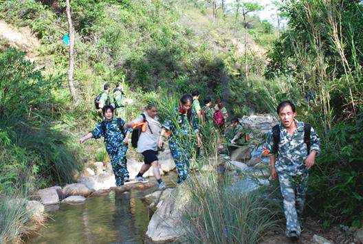 圖說:在山間的小溪間跋涉,體力消耗是很大的