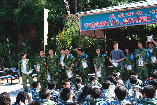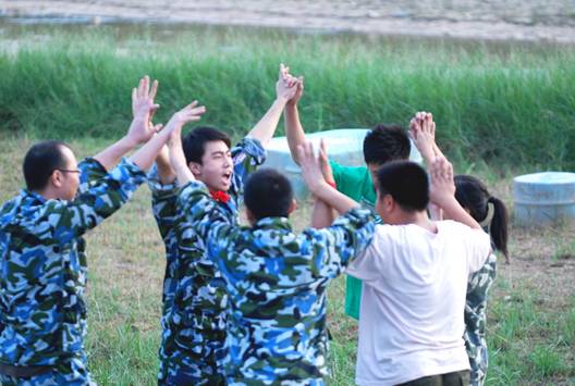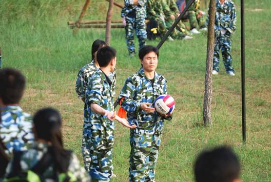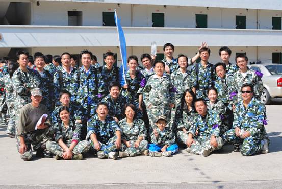在做完熱身運動后,拓展活動也拉開了序幕。 既然是集體活動,集體的概念也是最基本的。在教練的帶領下,近200名商科同事劃分為7個小隊。教練給出15分鐘時間,要各小隊決定自己的隊名、口號、隊歌和隊伍造型。