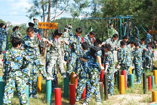 圖說:智力梅花樁。這個項目可以很好的鍛煉大家集體行動的能力。