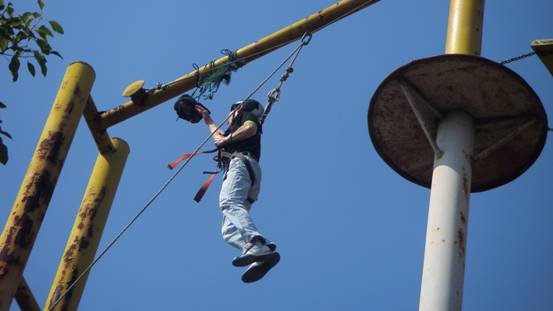 十點二十分,高空項目。訓練還沒開始,光是它8米這個數字都已讓人聞而生畏了。但所有人都克服了心中的恐懼,不管是輕松的還是艱難的,不管是哭著的還是笑著的,都突破心中極限,順利的完成了任務!
