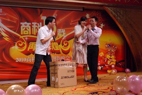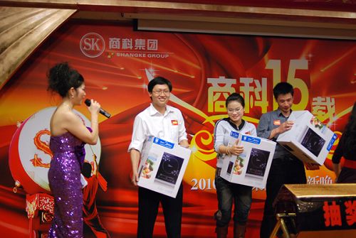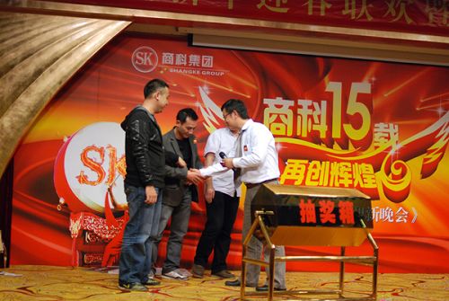 文藝表演部分在業(yè)務(wù)部員工的大合唱《奔跑》中告一段落 按照商科公司的傳統(tǒng),本命年的員工在新年里都可以得到一份禮品。