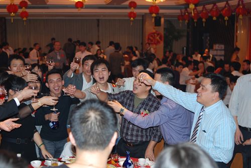 商科集團(tuán)孫總、劉總依次向各部門員工敬酒,表達(dá)公司領(lǐng)導(dǎo)對(duì)員工的關(guān)懷,宴會(huì)在歡樂(lè)的氣氛中進(jìn)行