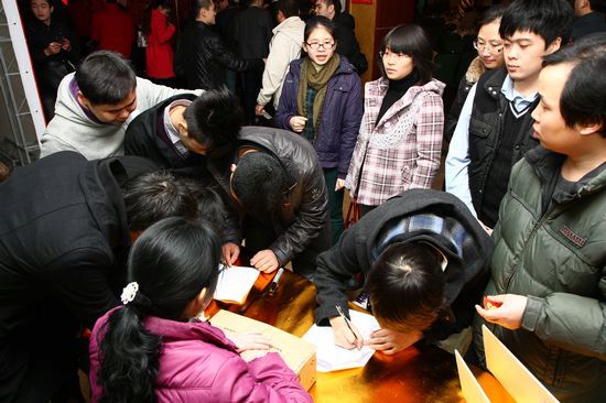 每一位到來的同事都需要在簽到處抽取自己的幸運號碼,并在簽名墻上簽名。