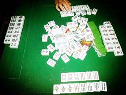 在南昌閑暇時的消遣,居然一場麻將四家清一色,打得真是歡樂。。▊渥ⅲ赫绞桥,自摸三家,我左邊的筒子極品自摸兩家。對面的條子沒成功,點炮給了萬字極品,哈哈。)